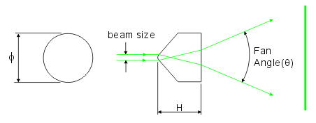 The Powell Lens can be widely used in alignment, machine vision systems, construction and process control fields. At present our Powell Lens are available in a variety of fan angles as following.